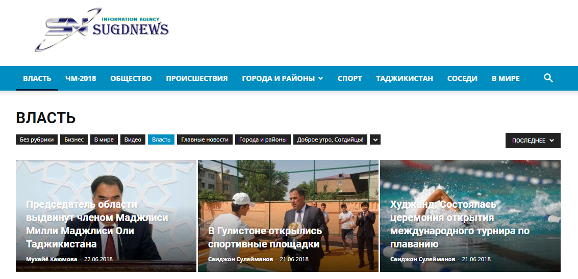 «С утра мне на телефон стали приходить сообщения о массовом удалении новостей www.sugdnews.tj с нашей официальной странички на Facebook, — отметил Бахманёр Надиров. – Чуть позже выяснилось, что помимо новостей с официальной странички удалены новости, которыми наши корреспонденты или друзья делились на своих личных страницах».