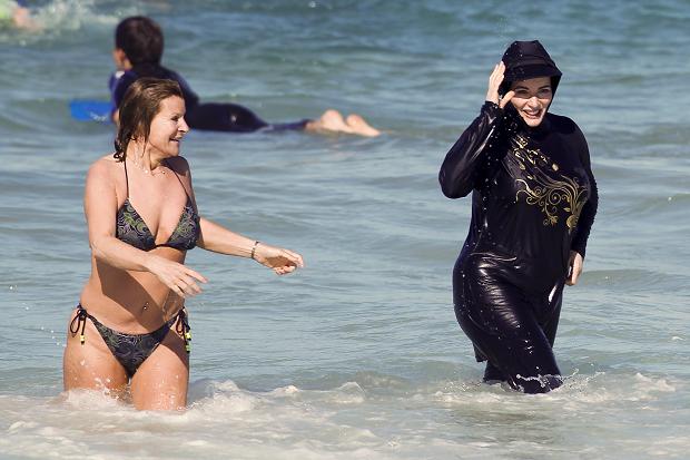 При этом в арабских странах, где по-прежнему женщине предписывают закрывать свое тело практически полностью, женщины и девочки-подростки купаются в подобии дайверских гидрокостюмов — буркини, полностью закрывающих тело и волосы.