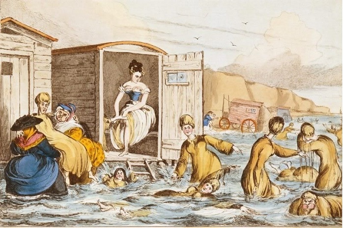 Однако Средневековья подразумевали соблюдение женщинами скромности: купание в открытых водоемах было уделом преимущественно простых людей, и женщины, если они отваживались окунуться в море или реку, делали это в длинных закрытых рубахах из плотного полотна.