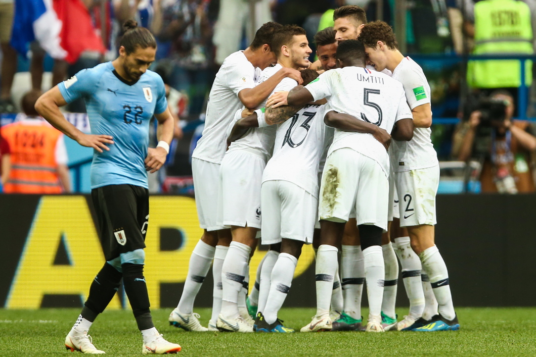 После этого Килиан Мбаппе (Франция) упал на газон, Диего Годин подбежал и дернул за руку француза. Началась массовая потасовка, за которую Мбаппе и Кристиан Родригес (Уругвай) получили по желтой карточки.