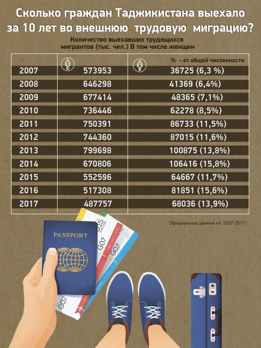 Внешняя трудовая миграция существует уже более 25 лет и за эти годы мигранты, которые в основном ездят на заработки в Россию, стали чуть ли не основными кормильцами Таджикистана. Кризис показал, насколько плачевными могут быть последствия снижения уровня денежных переводов для нашей республики. Парадокс в том, что, несмотря на все это, у трудовых мигрантов Таджикистана нет прав на получение пенсий и пособий ни на родине, ни в стране, где они работают, да и в целом существует много проблем, о которых вроде знают все, в том числе, и правительство, но почему-то дело дальше обсуждений не идет.
