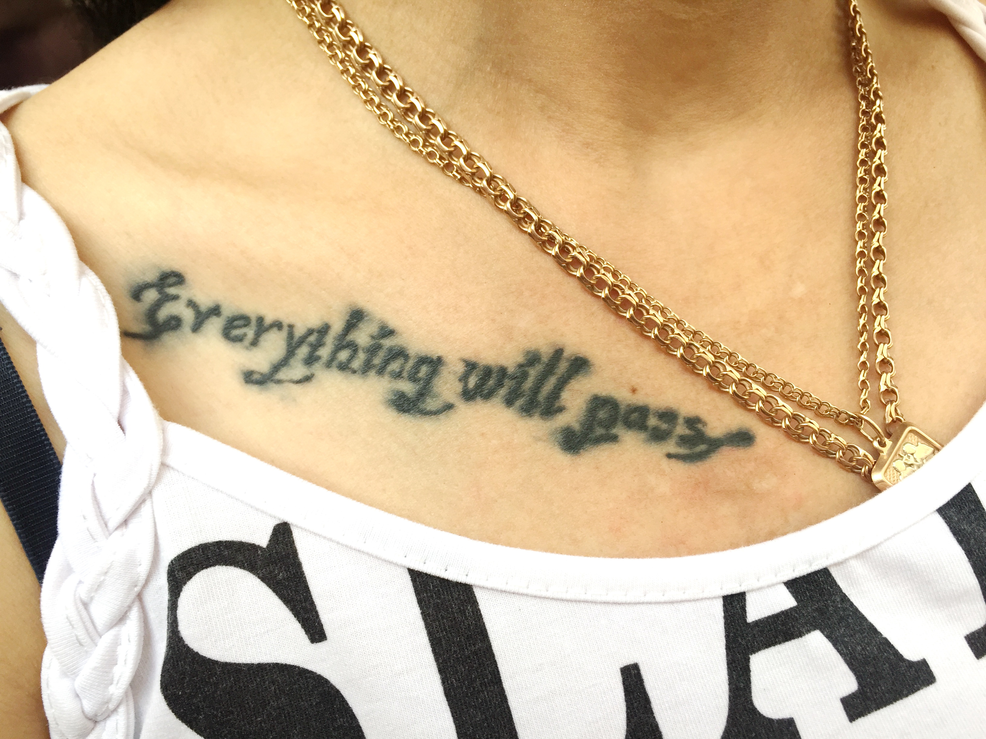 — Мне все время приходилось быть скромной, строгой, жить по всем правилам и канонам, установленным родителями, ведь я была примером для подражания для сестренок и братишки. Но я всегда мечтала жить так, как я хочу, и когда у меня выдалась такая возможность, я пустилась во все тяжкие (смеется). Сейчас у меня поздний подростковый период, — рассказывает носительница тату Шоира Баймурзаева. — Так я выражаю свой внутренний мир, свою индивидуальность.