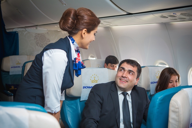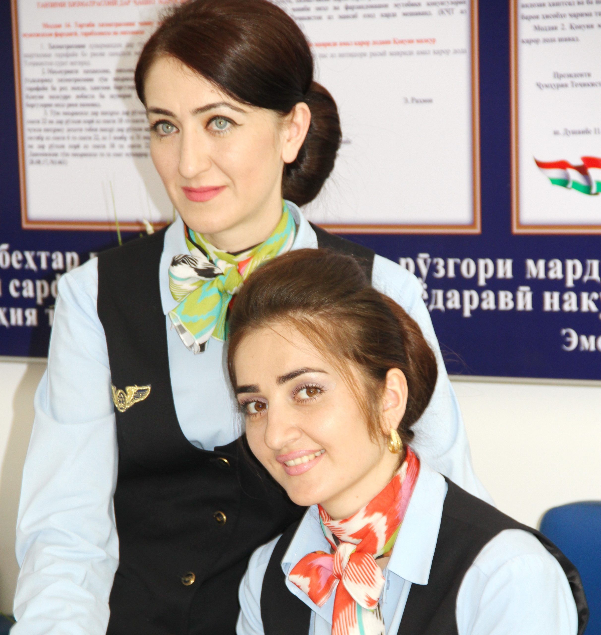 Итак, в должностные обязанности стюардесс таджикских авиалиний входит обслуживание пассажиров и обеспечение порядка и безопасности на борту самолета.