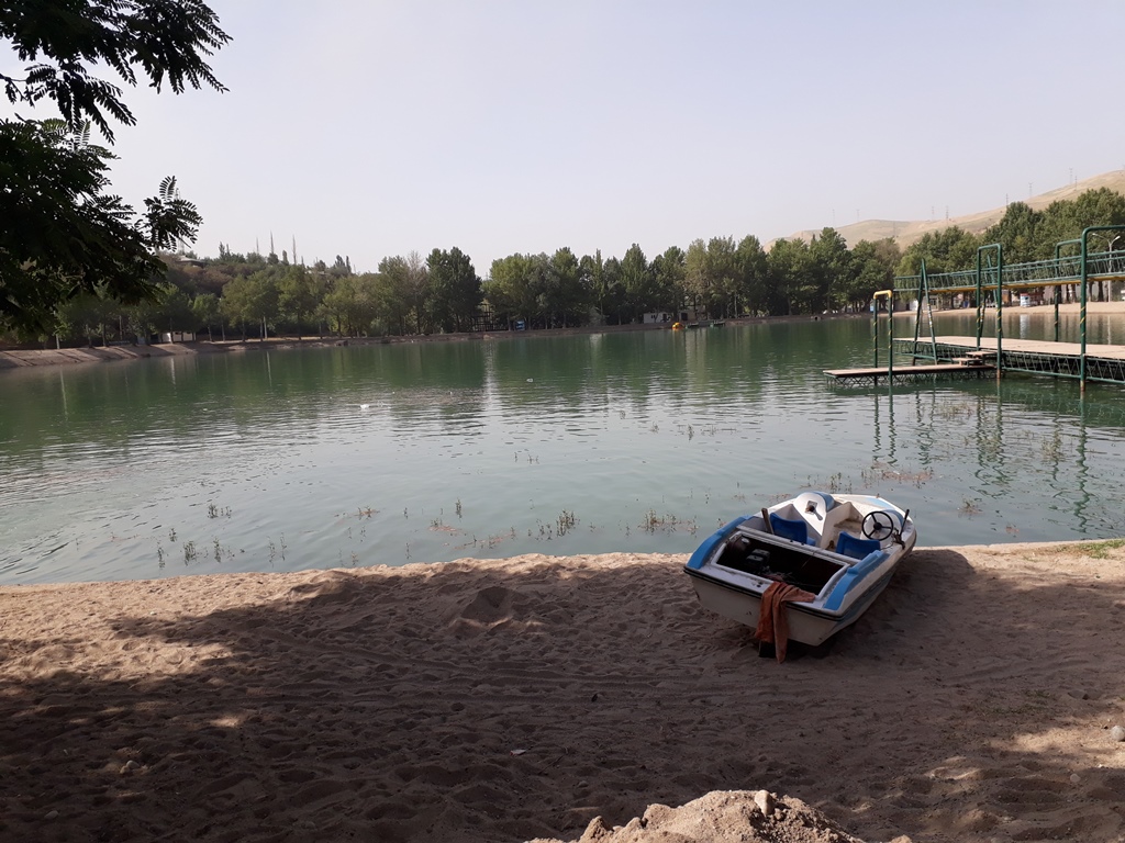 Молодежное озеро, больше известное, как Комсомольское. Здесь есть места, где купаться можно, а есть, где нельзя – все обозначено табличками. Спасательная вышка на берегу есть, здесь дежурит спасатель Мухаммад Асомиддинов, в его распоряжении есть и спасательный катер.