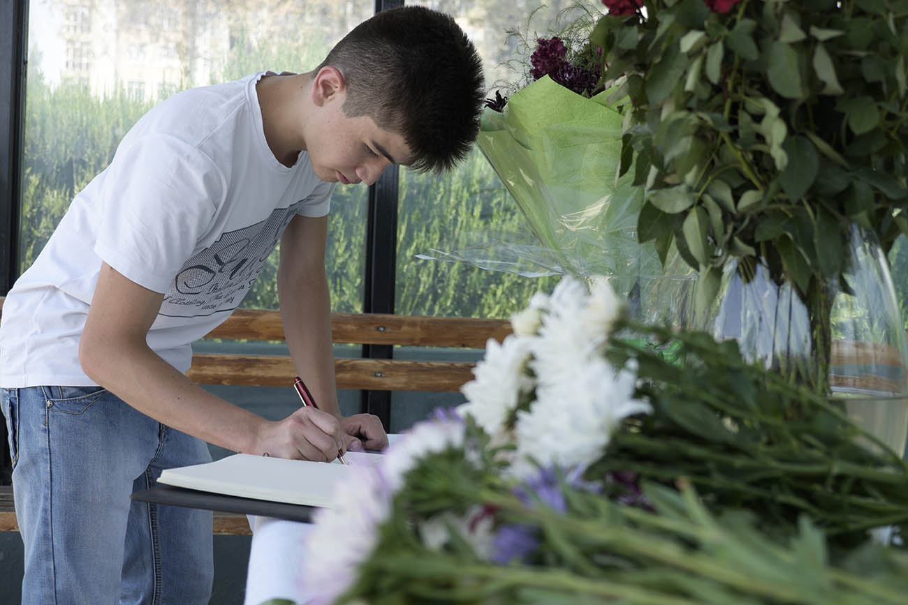 Цветы в диппредставительство несут с утра, посетители также оставляют записи в книге соболезнований.