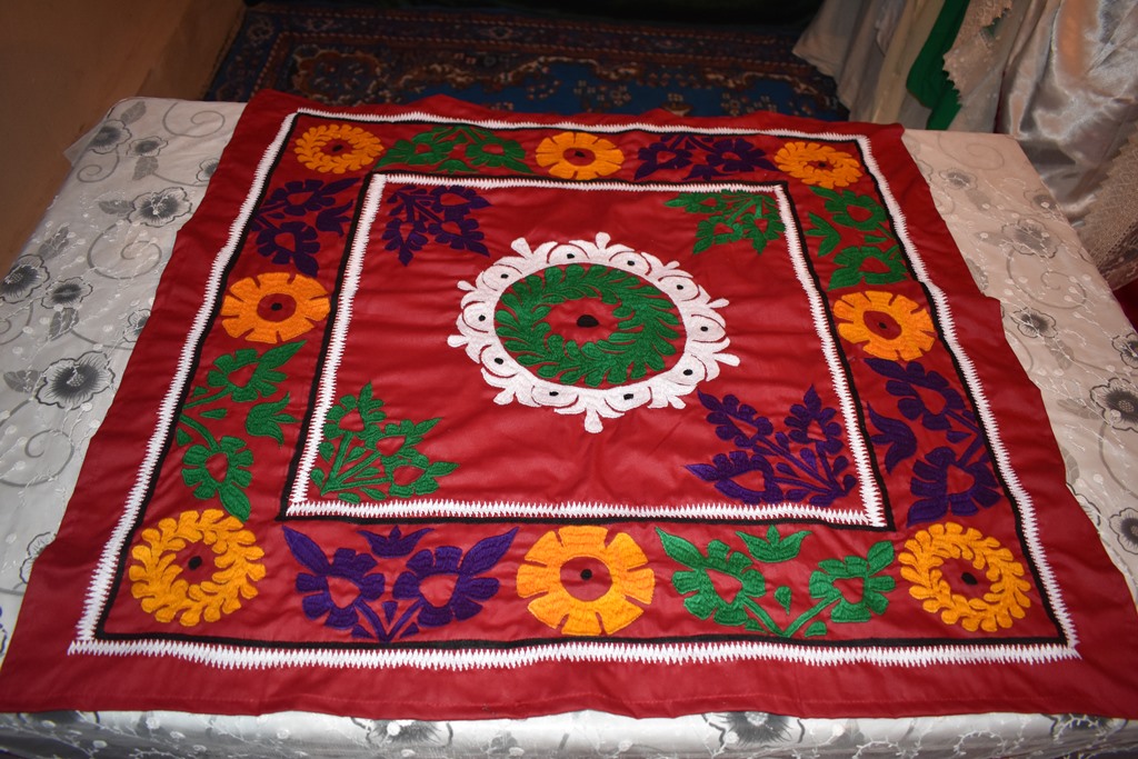 — Таджикской невестке особенно на селе, приходиться нелегко: надо рано вставать, доить корову, подметать двор, готовить завтрак, печь лепешки, в общем, целый день заниматься домашней работой. Как вы, имея к тому же маленького ребенка, находите время заниматься еще и вышивкой, ведь это очень трудоемкая работа?
