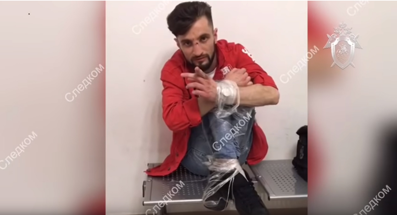 На кадрах видно, как хулиган сидит на скамейке, а его руки и ноги замотаны упаковочной пленкой. Задержанный отказался отвечать на вопросы, заявив, что у него нет имени, даты и места рождения, образования и работы. На вопрос, зачем он прибыл в Россию, он ответил, что он «учился в Омске».