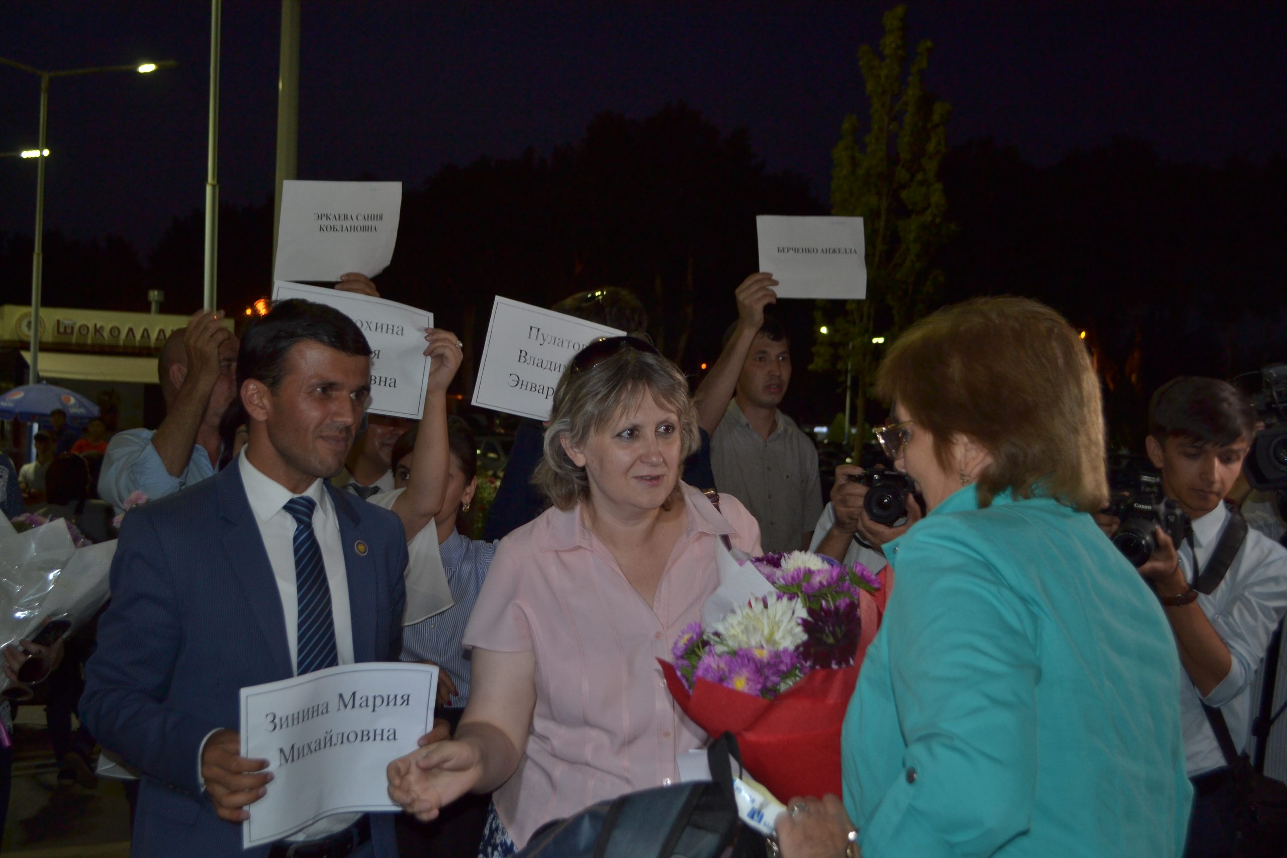 Российские учителя прилетели в Душанбе из Москвы самолетом авиакомпании «Сомон Эйр», который приземлился в столичном аэропорту в 18:30. Российских педагогов встречали не только чиновники и журналисты: среди встречающих были и директора и учителя школ, в которых педагогам предстоит работать в новом учебном году.