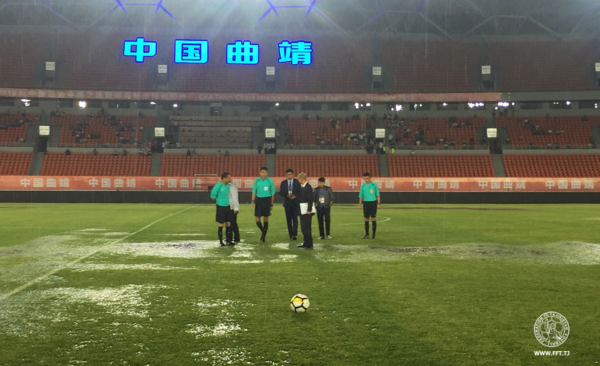 Матч второго тура международного турнира в китайском городе Цюйцзин между молодежными сборными Таджикистана (U-21) и Китая (U-21) был прерван на 77-й минуте при счете 1:1 из-за сильного дождя, и так и не был доигран.