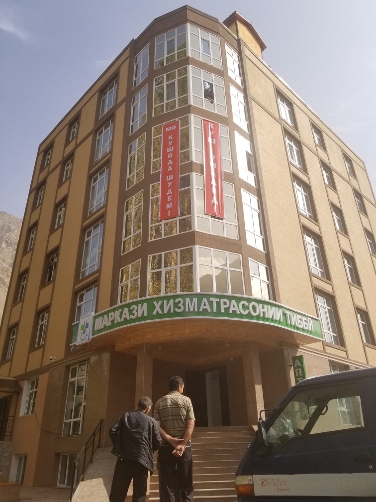 Новый частный Медицинский центр находится на территории областной больницы. В отличие от других лечебных отделений, здание центра по-особому привлекательно. Необычное по своему дизайну помещение конференц-зала с камином в центре и потолком в виде памирского дома, находящийся на высоте 26 метров, придает зданию облик «высотки». Внутри здания кое-где идут последние отделочные работы. Почти на всех этажах сотрудники заняты уборкой и расстановкой мебели.