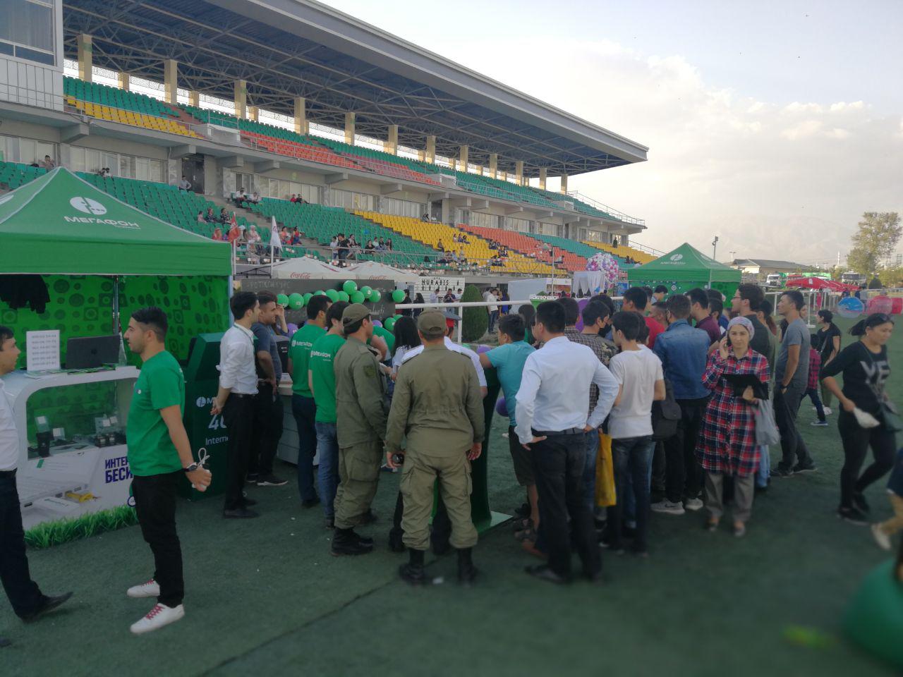 Пути к призам на площадках компании «МегаФон Таджикистан» были разнообразными: гостям предлагалось попасть дротиками в надувные шары, ответить на вопросы о мобильных услугах, сделать на фестивале и выложить в соцсетях фото, которое признают самым креативным, съесть пончик без помощи рук.