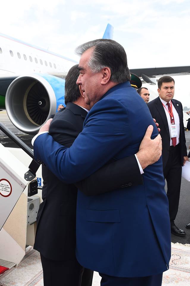 Шавкат Мирзиеёв и Эмомали Рахмон, который встретил своего узбекского коллегу в столичном аэропорту, обсудили перспективы дальнейшего развития двустороннего сотрудничества Таджикистана и Узбекистана.