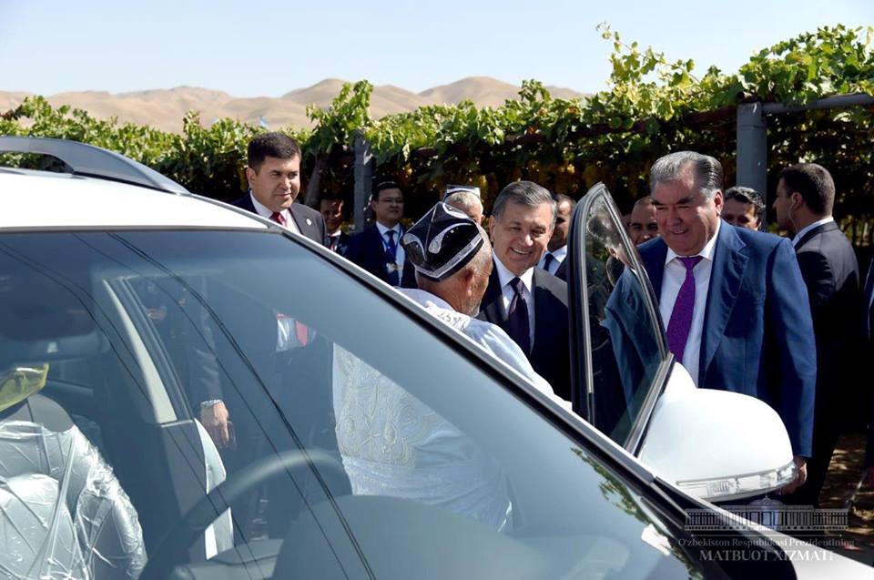 Мирзиёев подарил таджикским дехканам автомобиль Captiva