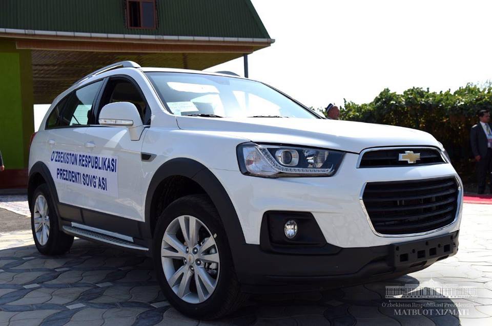 «Президент нашей страны осмотрел виноградник и склад хозяйства. Шавкат Мирзиёев подарил Камолу-ота Мадумарову произведенный в нашей стране автомобиль Captiva. Глава нашего государства посетил также дехканское хозяйство "Ватан" того же района и подарил автомобиль Captiva его руководителю Неъмату Усмонову», — сообщает пресс-служба узбекского президента.