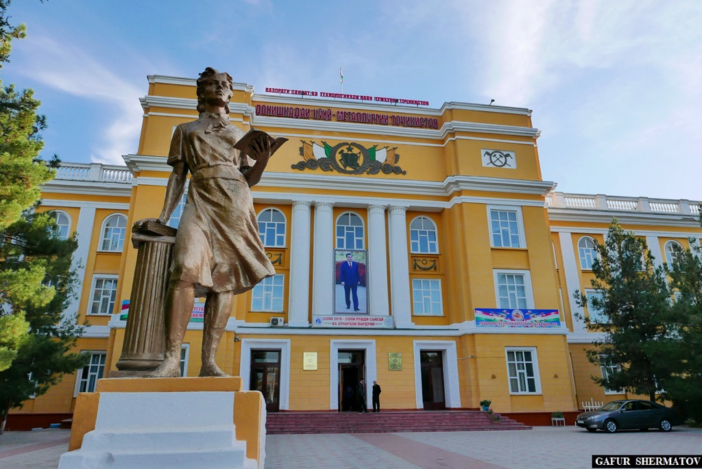 В композиции здания горно — металлургического института Таджикистана в Бустоне (Чкаловск) присутствуют боковые пристройки, которые связаны с центральным зданием переходами. Стены окрашены насыщенным цветом, на их фоне выделяются белые колонны, подчеркивая архитектонику стен из кирпича.