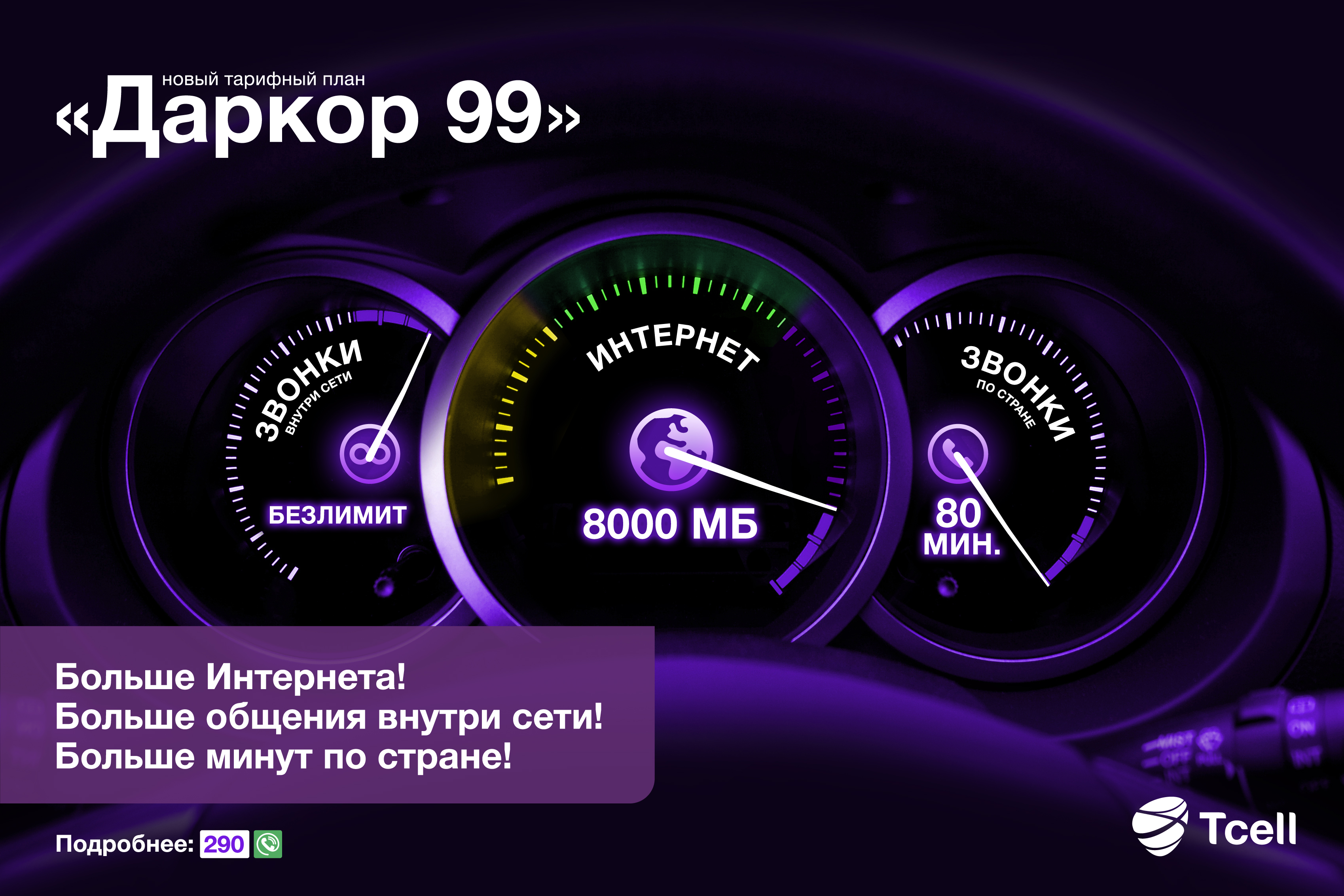 Для тех, кто не привык считать расходы мегабайтов трафика, и хочет пользоваться всеми возможностями глобальной сети, компания Tcell разработала новый тарифный план – «Даркор». В тарифном плане представлена линейка тарифов – «Даркор 19», «Даркор 35», «Даркор 59», «Даркор 159» и «Даркор 199». Цифра в обозначении тарифа указывает абонентскую плату. Объединяет все тарифы из линейки одно – во всех них теперь еще больше мегабайт для использования Интернета, за еще меньшую цену! Также, каждый тариф включает минуты на исходящие звонки по Таджикистану, пакет СМС, а звонки внутри сети Tcell не тарифицируются! Таким образом, «Даркор» — это действительно «Нужный» тариф во всем, что бы вам не понадобилось – звонить, писать сообщения, или находиться в сети.