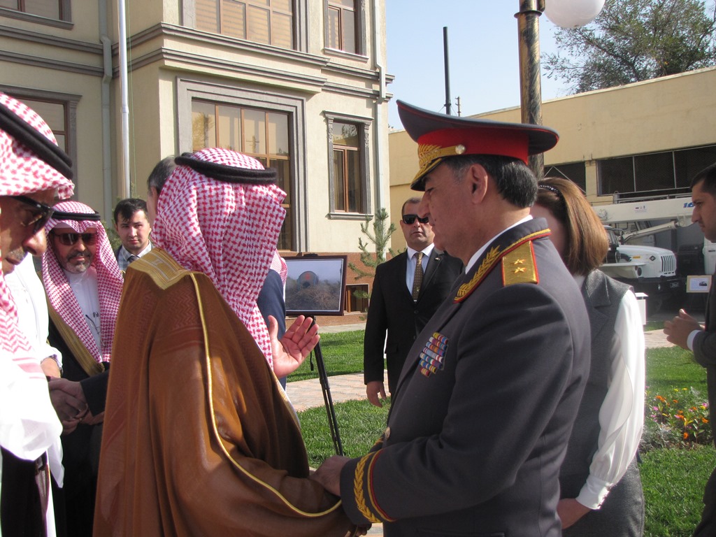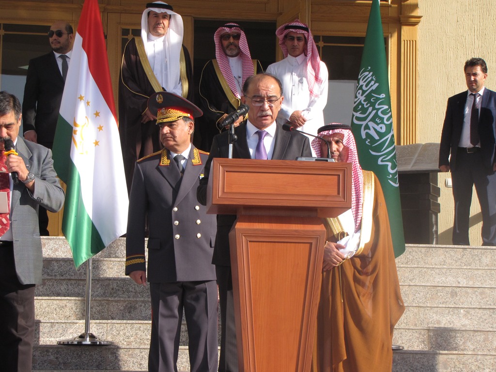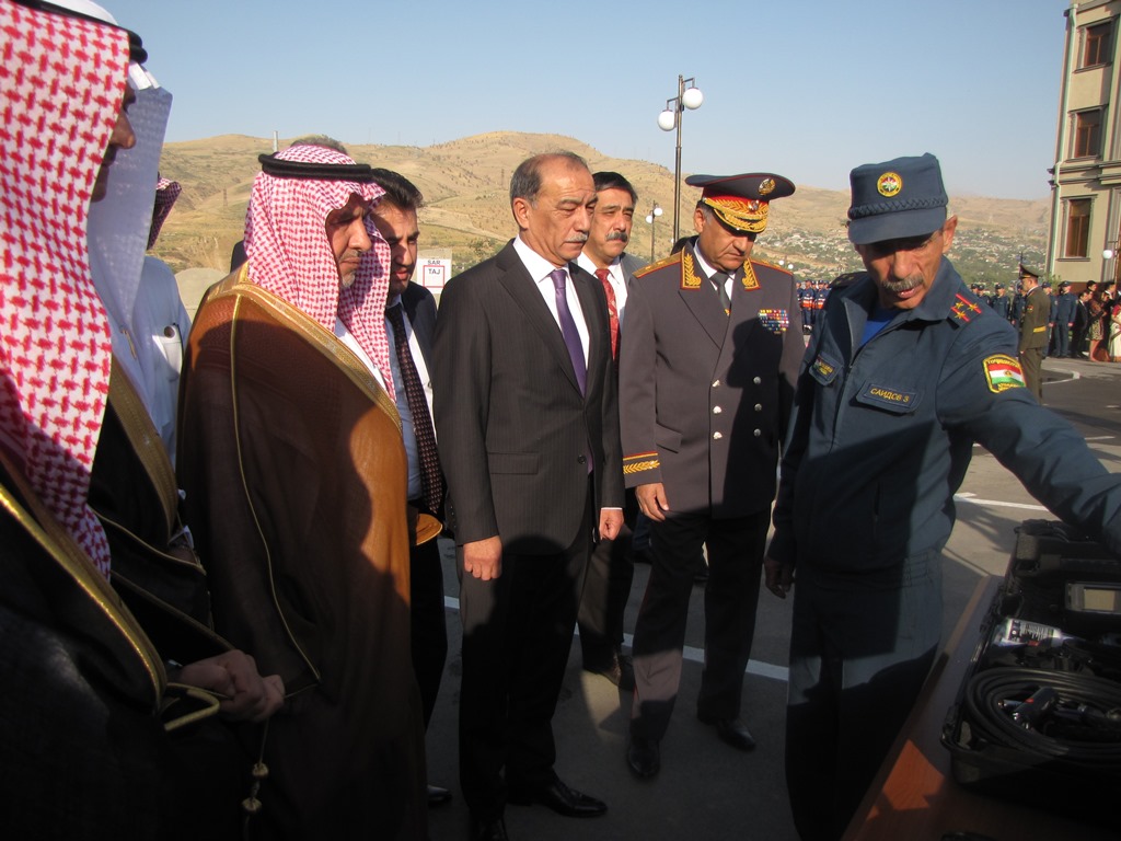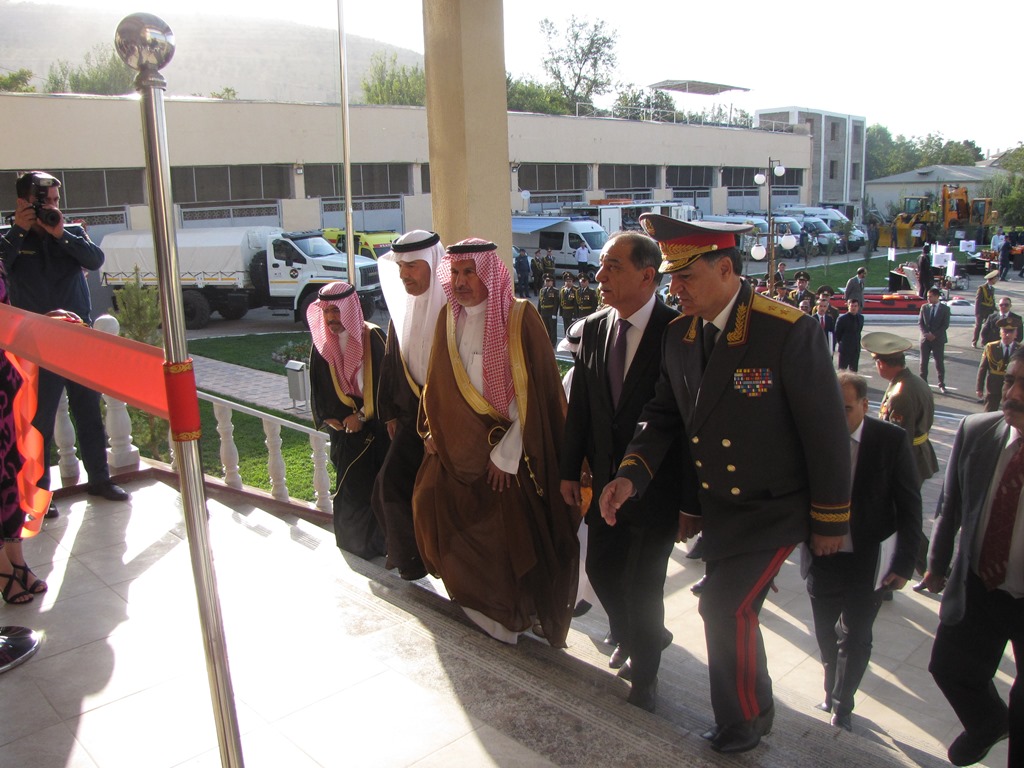 В церемонии открытия приняли участие секретарь Совбеза РТ Абдурахим Каххаров, Руководитель центра поддержки и гуманитарной помощи Короля Саудовской Аравии Салмана Абдуллох ибн Абдулазиз ар-Рабиа, глава Гендиректората гражданской обороны МВД Саудовской Аравии Сулаймон ибн Абдуллохал-Амр, председатель КЧС и ГО Таджикистана Рустам Назарзода и др.