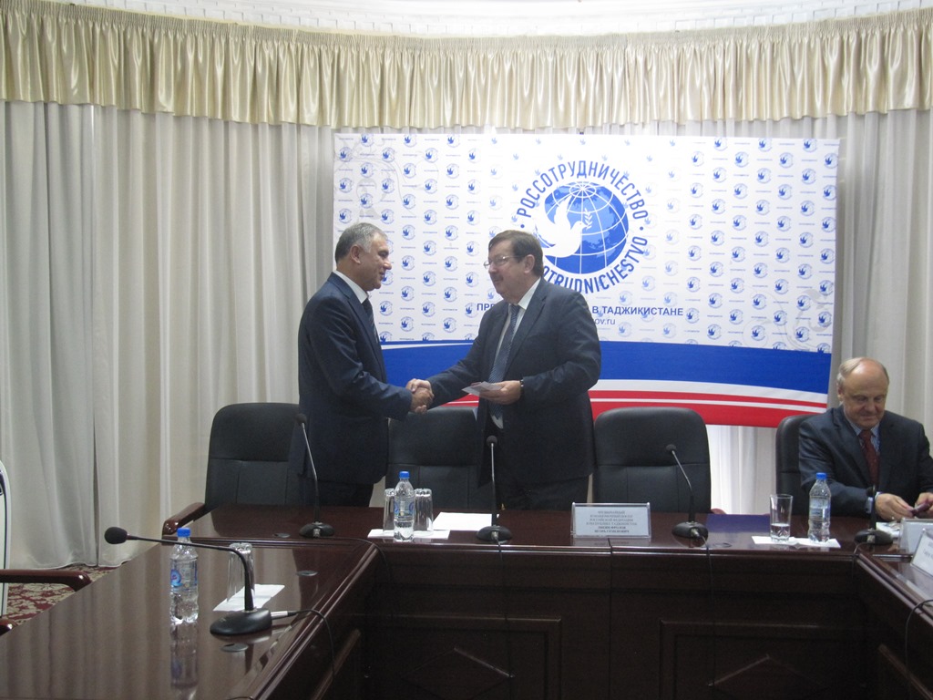 Во время работы круглого стола активистам группы «Память-201» — предпринимателю Абдукадыру Абдусамаду, который помогает восстанавливать могилы советских солдат, погибших в Сталинабаде во время Великой Отечественной войны, а также историку Виктору Дубовицкому, который сохраняет память о трагедии в авторских работах, были вручены юбилейные медали «75 лет 201-й РВБ».