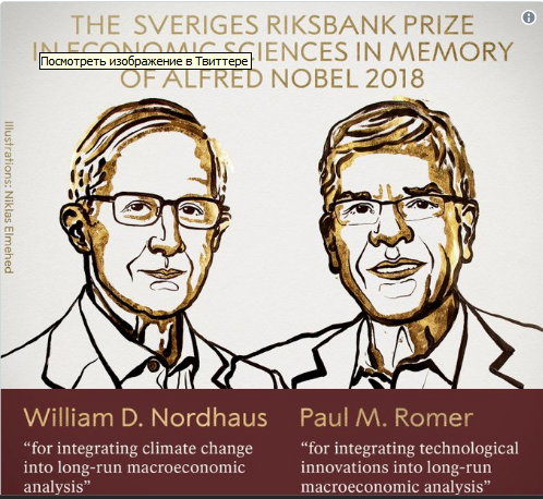 В Стокгольме объявили лауреатов премии по экономике, учрежденной в память об Альфреде Нобеле. Престижная награда присуждена Уильяму Нордхаусу и Полу Ромеру за интеграцию инноваций и климата с экономическим ростом, сообщает Нобелевский комитет.