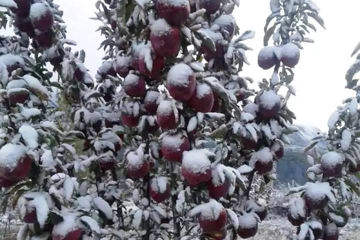 В соцсетях появились фотографии покрытых снегом фруктовых садов, в том числе, в Файзабаде. Пользователь Абумуслим Каландаров опубликовал в Фейсбуке фотографии яблонь, покрытых снегом, и сообщил о первом снеге в Файзабадском районе.