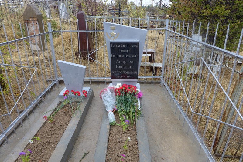 Могила героя СССР душанбинца Василия Андреева, пулемётчика, который совершил подвиг во время Великой Отечественной войны, после реставрации была открыта на душанбинском погосте. Всего здесь захоронено семь героев Советского Союза.
