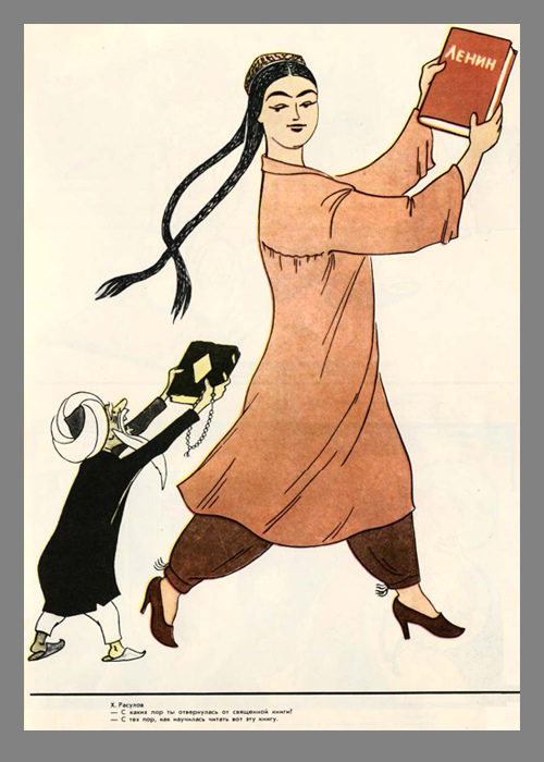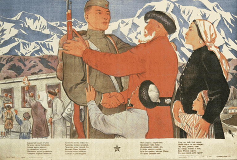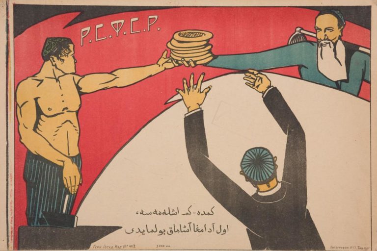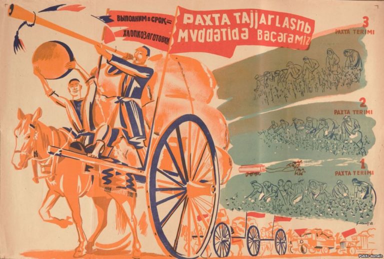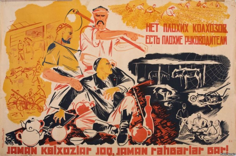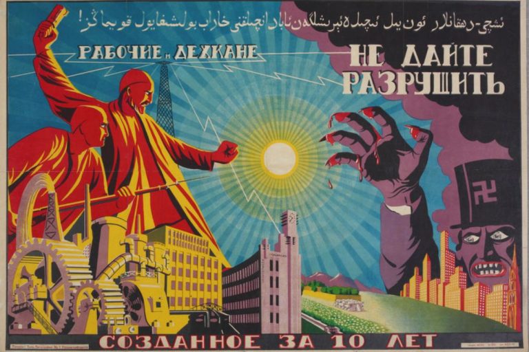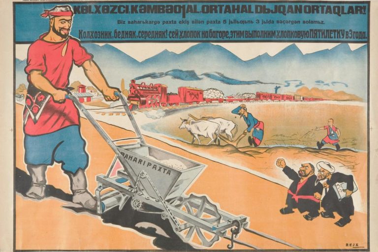 В 20-50 годы прошлого века в Советском Союзе выпустили много мотивирующих плакатов, призванных поднять рабочий дух у пролетариата в республиках Центральной Азии.