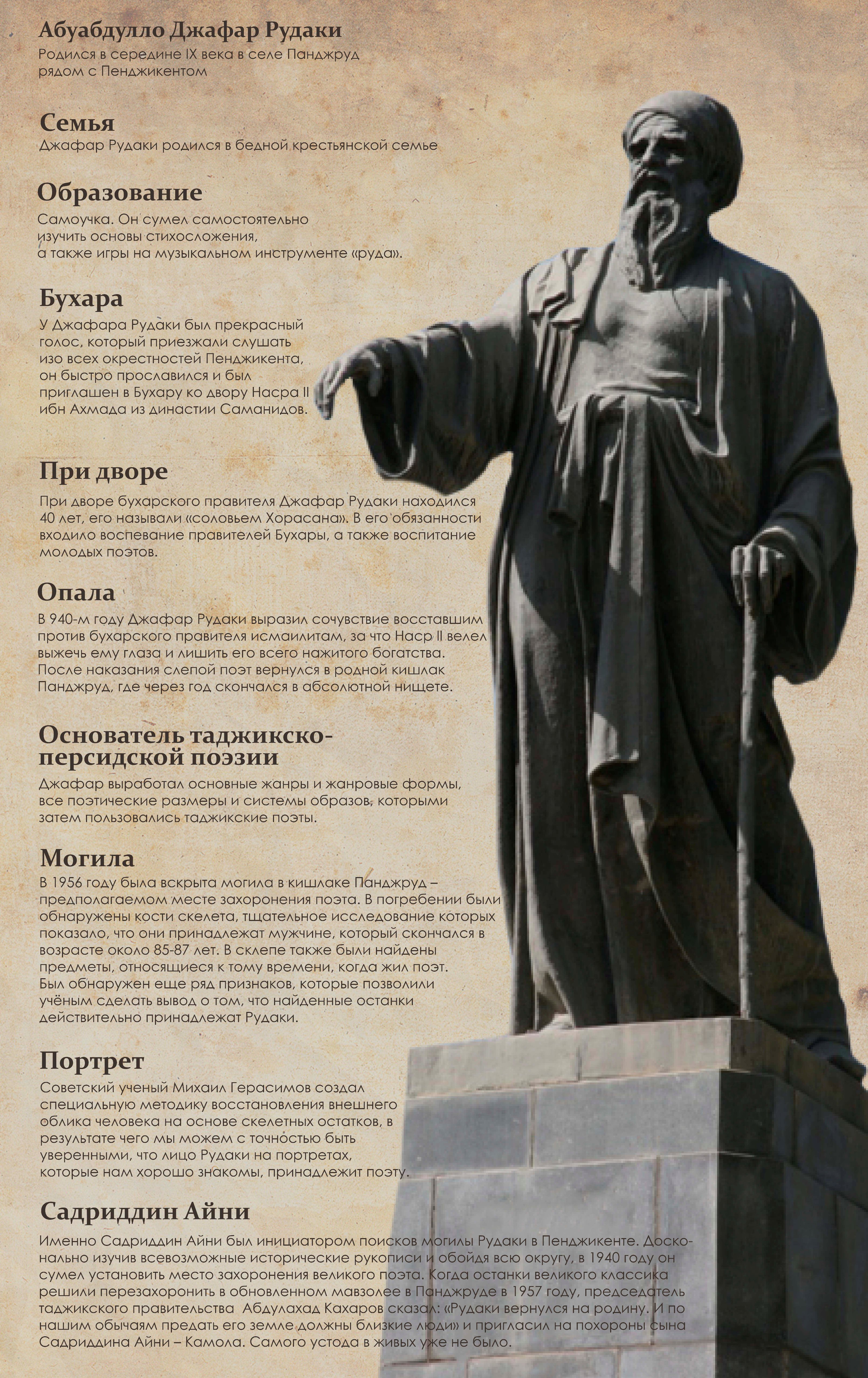 Со дня рождения Абуабдулло Рудаки прошло 1159 лет, однако его поэзия до сих пор широко распространена и любима среди жителей Таджикистана.