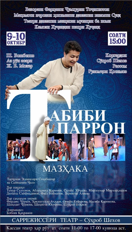 На сцене театра имени Камола Худжанди состоялась премьера спектакля по пьесе Мольера «Летающий лекарь» режиссера Сухроба Шехова.