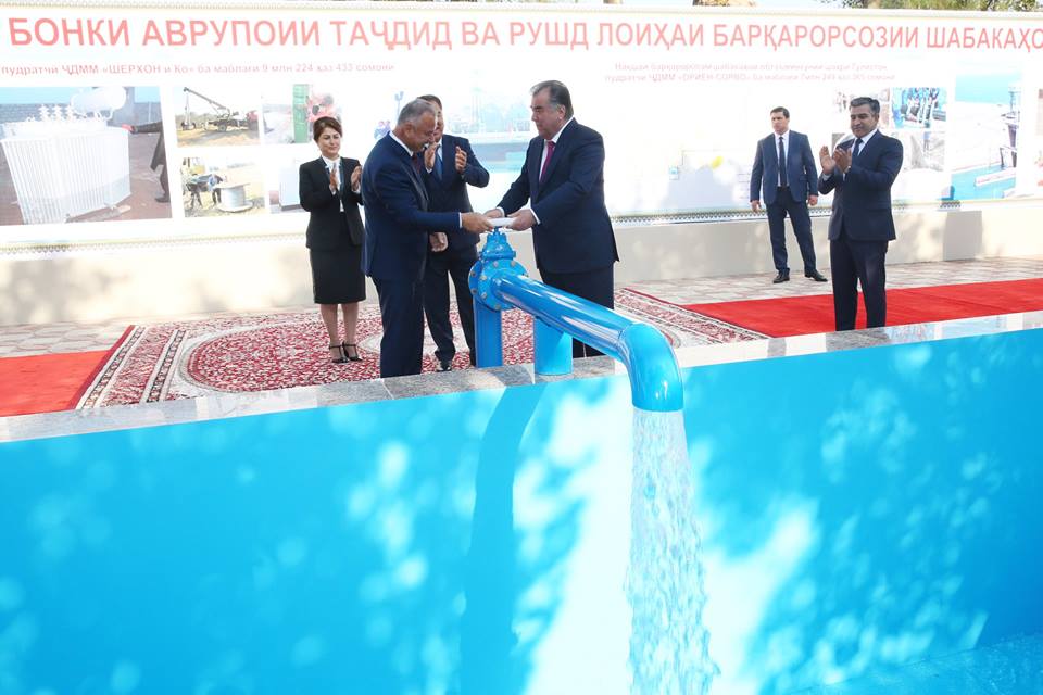 Эмомали Рахмон дал старт работе водопроводных сетей города – они обеспечат чистой питьевой водой свыше 15 тыс. жителей Гулистона. Проект был реализован при непосредственной поддержке Правительства Республики Таджикистан в рамках Проекта «Восстановление водоснабжающих сетей северных городов Таджикистана – 1».