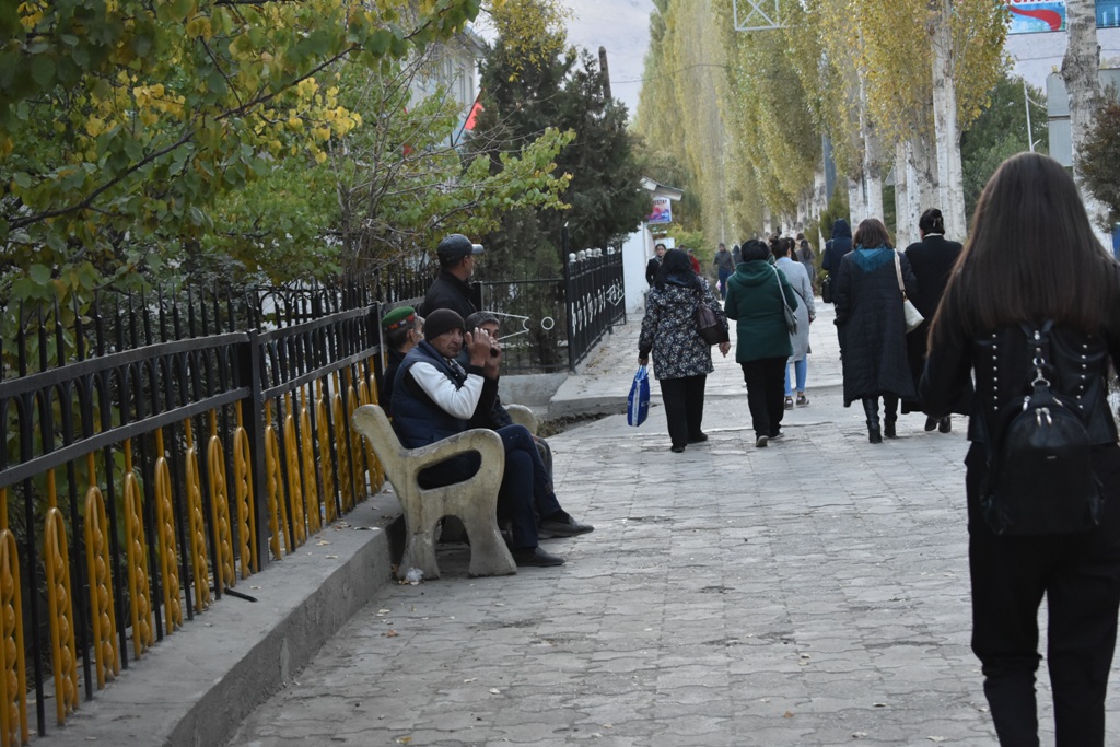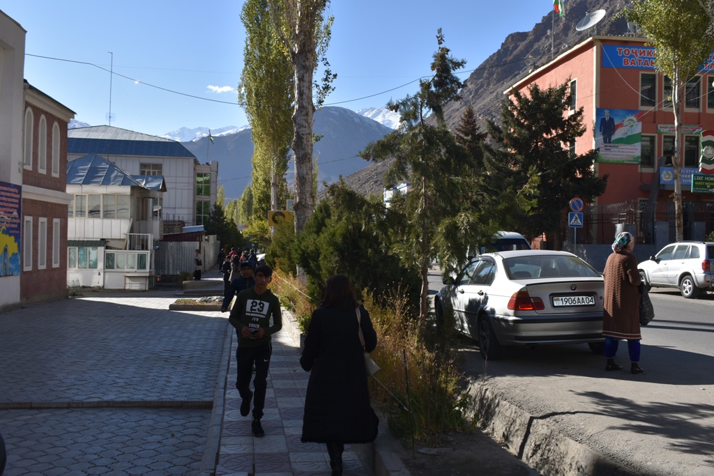 Город застраивается. Появились новостройки. Пытаемся спросить у молодого человека, сидящего возле зеленого забора, которым обычно обносят стройку, что же тут будет. Он отвечает на памирском, за что две молодые девушки, проходящие мимо, ругают его на том же языке (позже они сами перевели нам суть разговора), — «Тебя спросили на государственном языке, почему ты не отвечаешь?» — «Я не понимаю таджикский», — нервничает парень. Центровых (жителей столицы, да, впрочем, и других городов республики), тут не особо жалуют. Недружественные взгляды в последнее время тут можно встретить на рынке, улице, даже на лавочке, где сидят местные ребята.