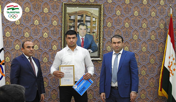 В Национальном олимпийском комитете Таджикистана состоялось награждение призёров Летних Азиатских Игр 2018 года. Серебряные призеры получили от правительства Таджикистана по 5 тыс. сомони, а обладатели бронзовых медалей — по 3 тыс. сомони.