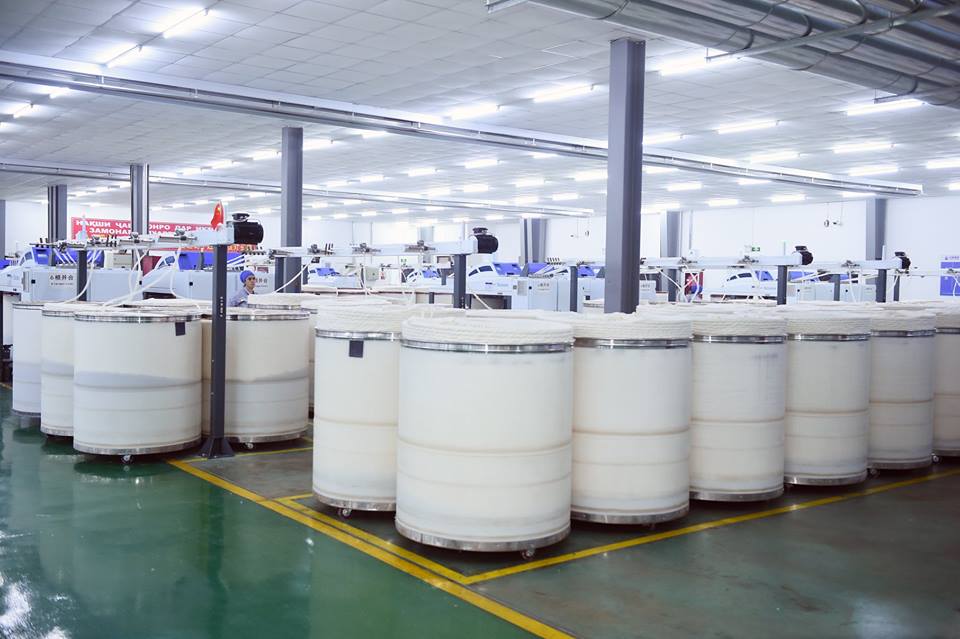 Первая очередь “Джунтай-Дангара Син Силу Текстиль” производственной мощностью 10 тыс. хлопка-волокна была открыта в августе 2016 года.