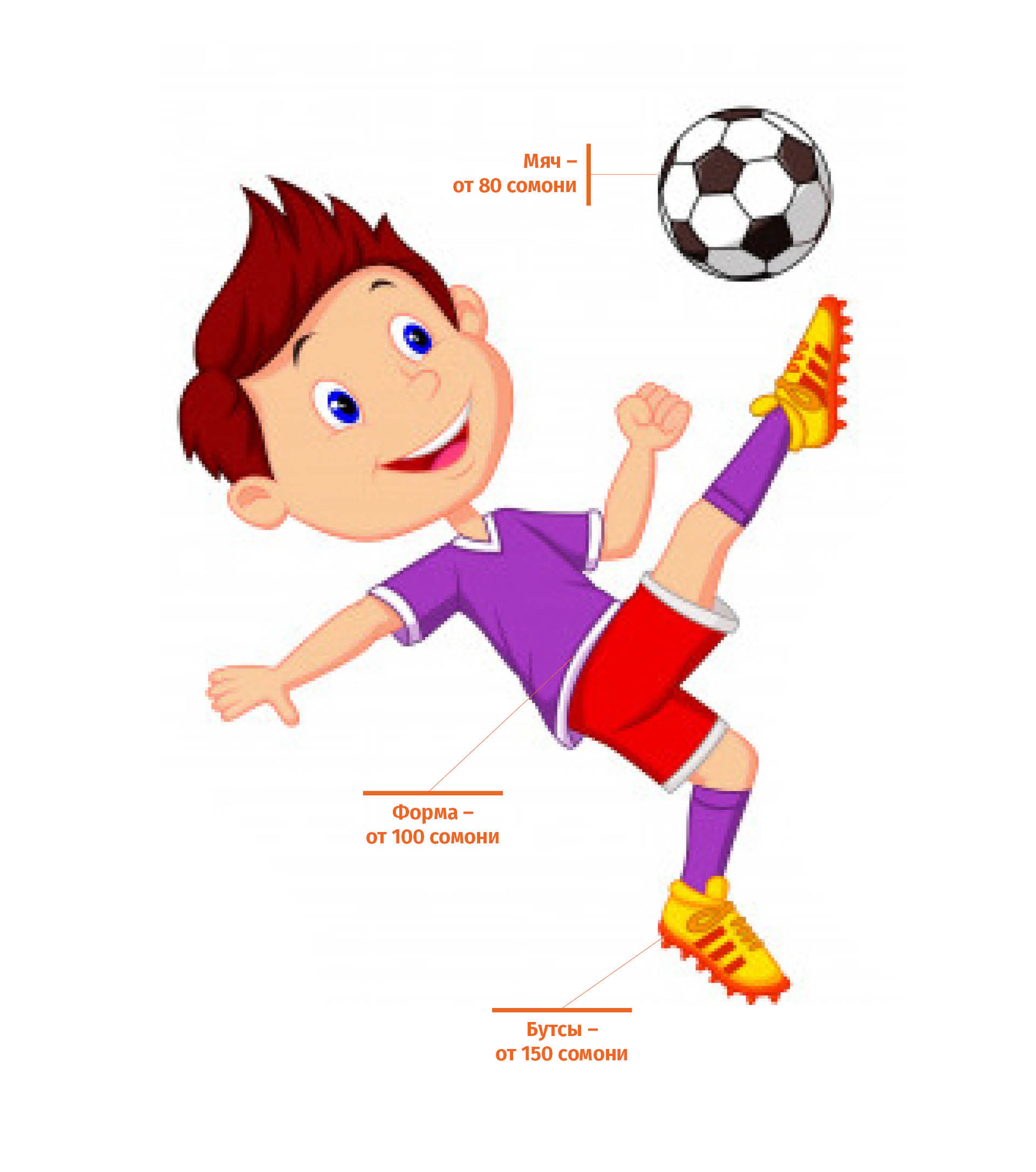 — Точную сумму назвать сложно. Возьмем средний расход на год. Пара комплектов недорогой экипировки (форма и бутсы) стоит 400-500 сомони. Еще 1200 сомони в год нужно выделить на оплату обучения, и 1200 сомони на транспортные расходы. Помимо занятий в команде с постоянным тренером, иногда нужно вносить в тренировки разнообразие, проводить занятия у кого-нибудь из других мастеров. Одно такое занятие стоит 30 — 50 сомони, 20-22 занятий в год будет стоить 1000 сомони. Итого, около 5 тысяч сомони в год. Нельзя забывать и о полноценном питании ребенка.