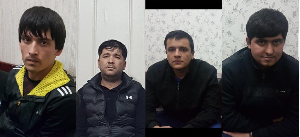 Среди задержанных трое жителей города Душанбе 37 летний Абдурасул Зоиров, 26 летний Махмадюнус Асроров, 25 летний Бехруз Рахматуллозода и 27 летный житель Куляба Зоир Худойбердиев.