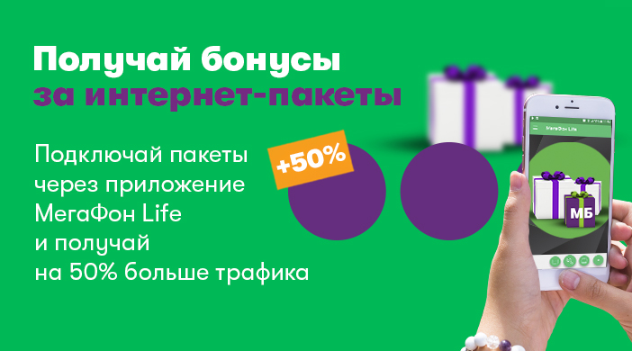 Получить в полтора раза больше интернета абоненты – физические лица могут на всех действующих тарифных планах. Каждый подарочный пакет предоставляется один раз, время его действия – такое же, как у основного пакета. Например, если клиент «МегаФона» выбирает «М 1000», включающий 1 000 Мб трафика сроком на месяц, в подарок от оператора он получит еще 500 Мб, использовать которые необходимо в течение того же периода. На следующий отчетный период подарочный пакет не переносится.