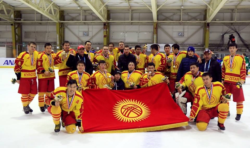 Кыргызстан. Количество катков в стране — 5. Хоккей здесь начал развиваться ещё во времена СССР. Крупнейший же успех приходится на 2011 год, когда команда получила права участвовать в третьем дивизионе мирового первенства после победы в Азиатских играх. Однако возможности поехать на этот турнир не было, и шанс оказался упущенным.