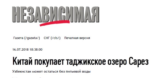 В «Независимой газете» появилась статья с громким заголовком «Китай покупает таджикское озеро Сарез».