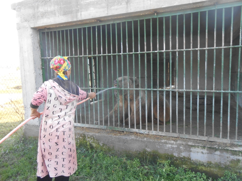 В первые месяцы, когда мы только начали работать, у нас не было даже для медведей домика, они жили в узкой клетке, полтора на полтора метра. При поддержке председателя города и предпринимателей мы построили для них по домику каждому, в них по две «комнаты»