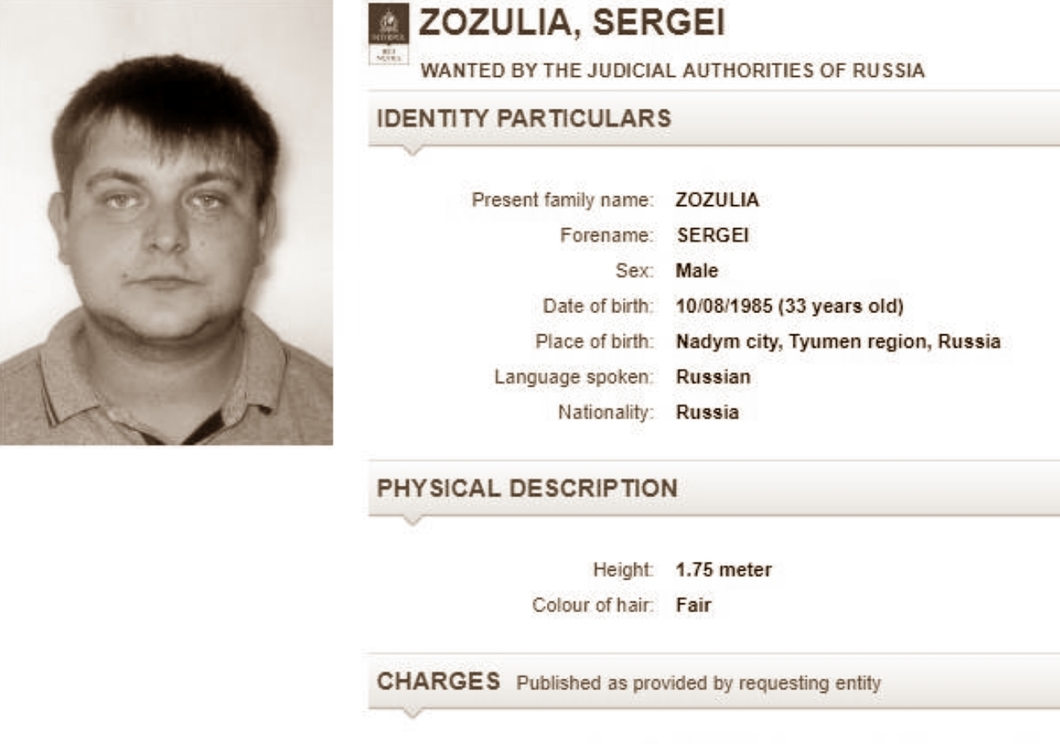 Бывший сотрудник ОБЭП Сергей Зозуля, давший банде наводку на предпринимателя Клованича, скрылся и объявлен в международный розыск.