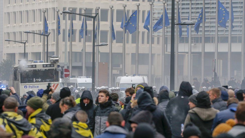 В столице Бельгии – Брюсселе — тысячи демонстрантов вышли на улицы в знак протеста против глобального пакта о миграции, подписанного на прошлой неделе главами 164 стран-членов ООН в Марокко.