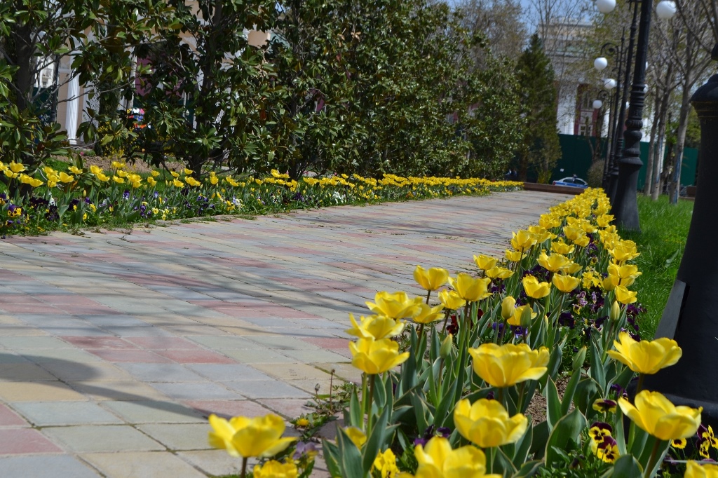 На площадях и парках столицы началась кампания по высадке тюльпанов. Первые луковицы уже посажены на площади Дусти и прилегающей к ней территории.
