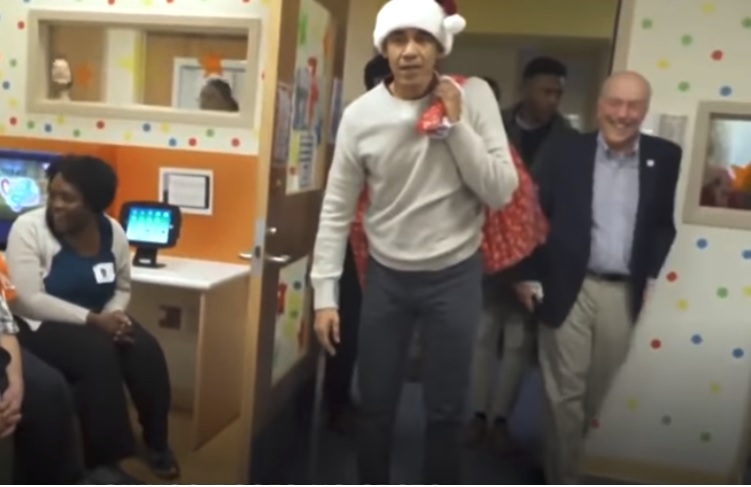 Обама поговорил с юными пациентами, вручил им подарки и спел с персоналом одну из самых известных рождественских песен.