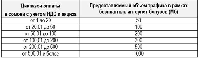 *Интернет-бонусы начисляются за все транзакции, кроме пополнения баланса на сотовые операторы РТ. Более подробно на сайте: infolife.megafon.tj