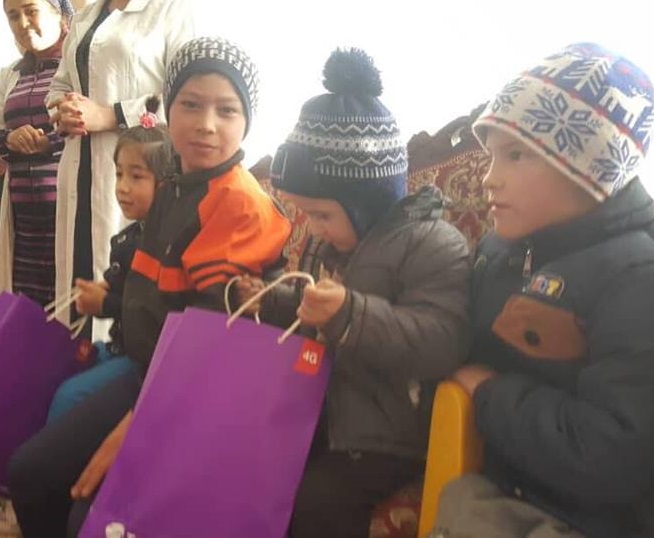 Интернат №1 в поселке Чорбог получил в подарок средства гигиены для воспитанников: здесь в основном проживают и учатся детишки с ограниченными физическими возможностями. Фиолетовый Дед Мороз также пришел и к малышам из интернатов для детей с ограниченными возможностями в Файзабаде и Шахринаве с «теплыми» подарками – веселыми игрушками и обогревателями для сохранения тепла в зимние холода.
