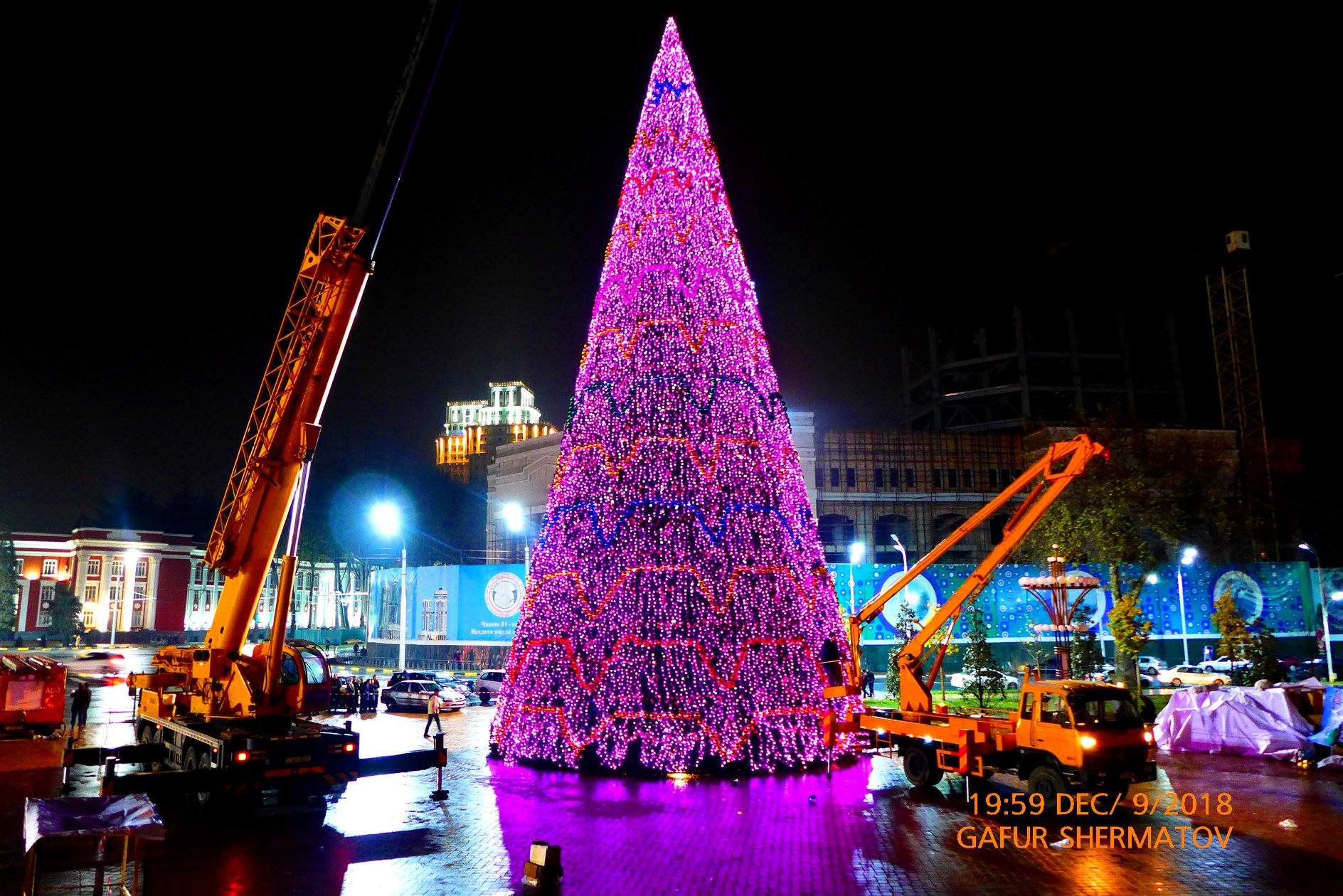 Главная елка Таджикистана, установленная на столичной площади Дусти, высотой 28  метров была установлена 10 декабря.