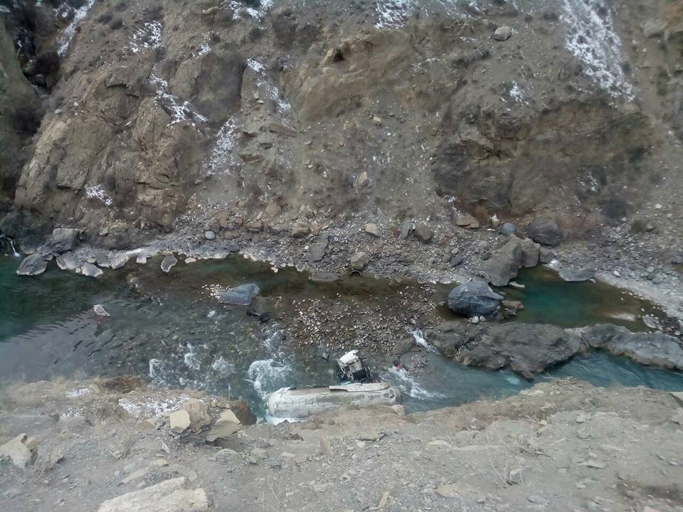 На 123 километре автотрассы Душанбе-Худжанд, вблизи кишлака Чоре Айнинского района грузовик, перевозивший газ, 10 января сорвался в пропасть со 100-метровой высоты, водитель погиб.