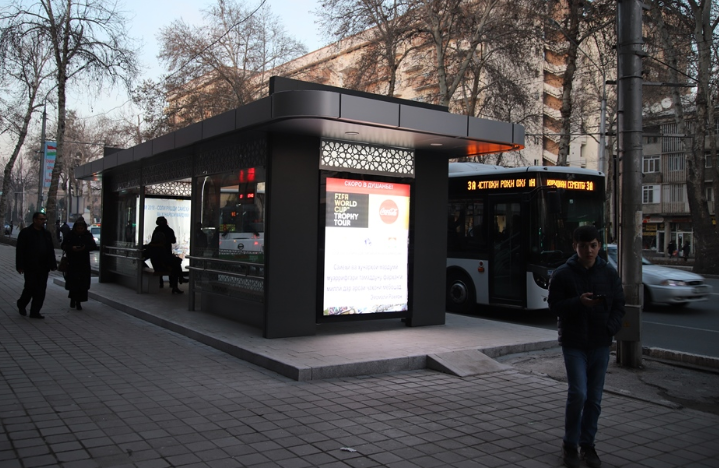 На остановках, кроме сидячих мест для ожидающих пассажиров, есть точки реализации прессы, электронных билетов общественного городского транспорта, электронное табло, на котором можно ознакомиться с маршрутами общественно транспорта в Душанбе, рекламное табло и городской телефон.