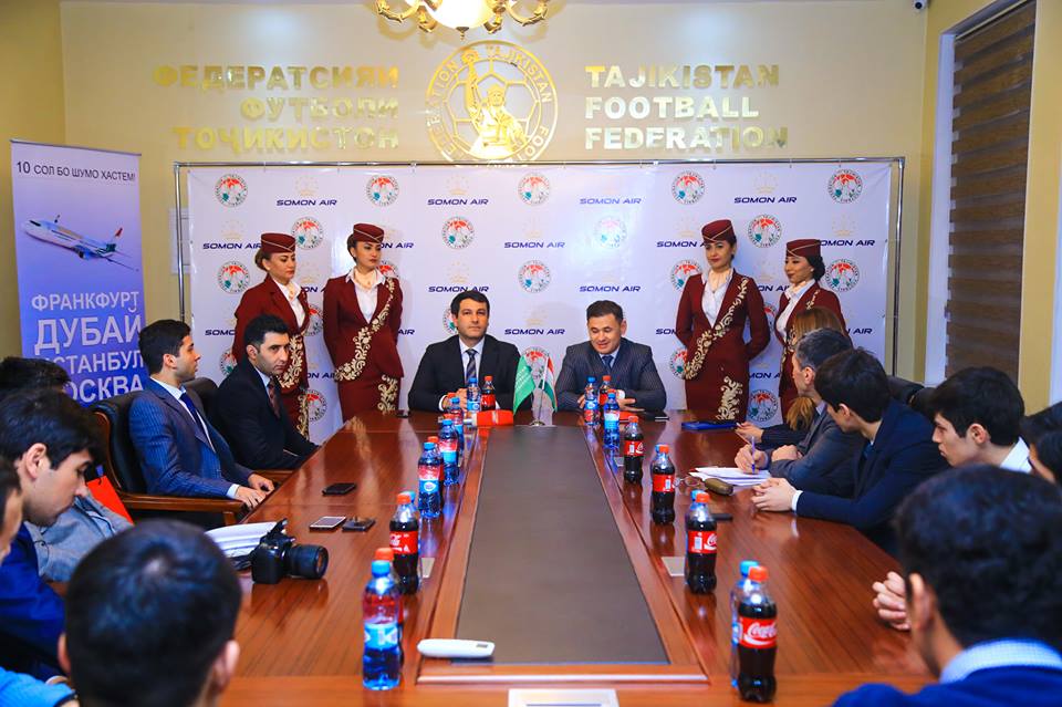 ФФТ тесно сотрудничает с «Сомон Эйр» с 2017 года. «Особенно хочу отметить, что в выходе юношеской сборной Таджикистана (U-16) на чемпионат мира-2019 в Перу есть и немалый вклад авиакомпании «Сомон Эйр». Надеемся на дальнейшее сотрудничество, успехов и процветания вам и всему вашему коллективу», – отметил вице-президент ФФТ.