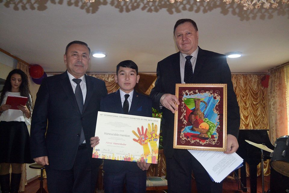 Награды — поощрительную грамоту конкурса и памятные подарки юному художнику Аброру Хамрокулову, воспитаннику школы искусств имени Лоика Шерали Худжанда, лично вручил Чрезвычайный и Полномочный посол Чешской Республики в Республике Таджикистан (с резиденцией в Ташкенте) Ярослав Сиро.