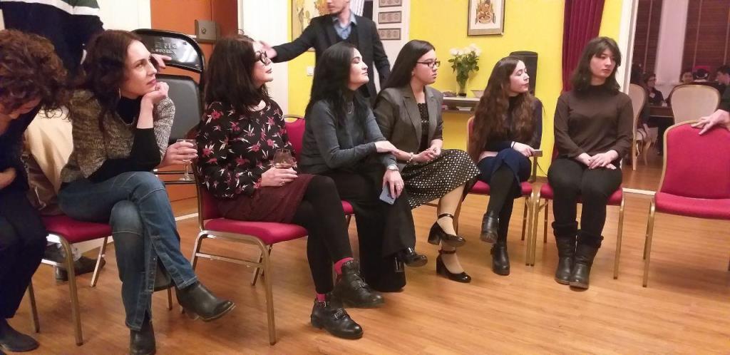 В итоге, название душанбинского вечера получилось таким — «Лицом к настоящему: женщины и искусство». Всем участникам предложили пройти в один из трех залов, в которых дискуссии велись – на таджикском языке, на русском, на французском и английском языках.